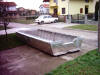 Aluminium boat very original made of aluminium sheets for ship floor. Just look the material it is made of.